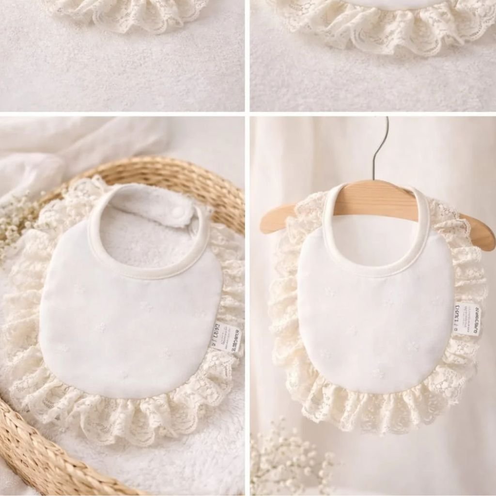 Babero blanco con pequeños volantes